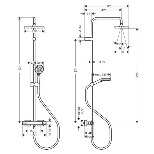 26286670 HG Vernis Shape Showerpipe 230 термостатическая душевая система матовый черный