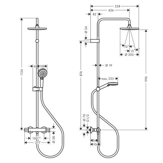 26318000 HG Vernis Blend Showerpipe 200 термостатическая душевая система