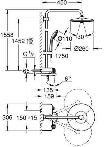 26510000 Euphoria SmartControl 260 MONO Душевая система с термостатом для ванны, хром