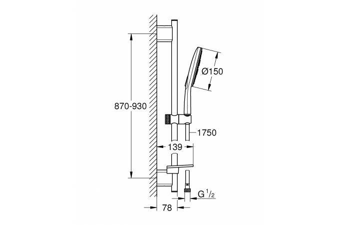 26593000 Rainshower SmartActive 150 Душевой гарнитур III, душевая штанга 900 мм, шланг 1750 мм, полочка, хром
