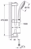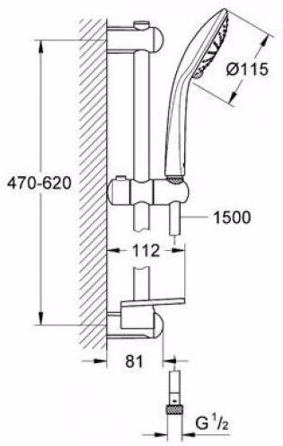 27242001 Euphoria Duo 110 Душевой гарнитур II, душевая штанга 600 мм, шланг 1500 мм, 9,5 л/мин, полочка, хром