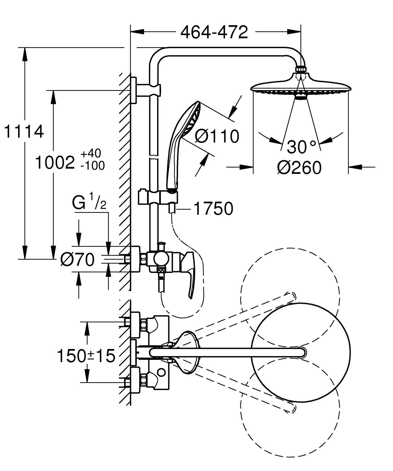 27473002 Euphoria 260 Душевая система со смесителем, хром
