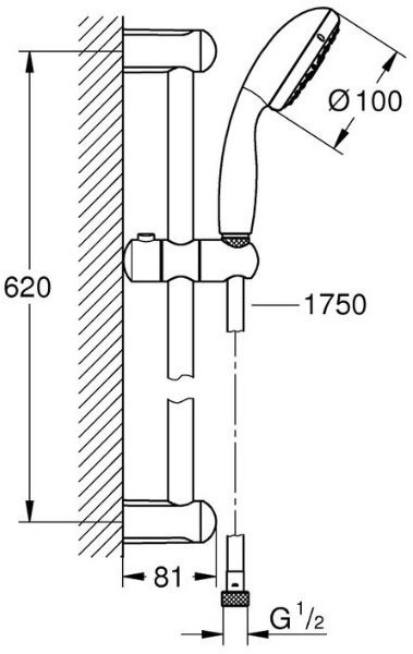 27795001 Tempesta New 100 Душевой гарнитур IV, душевая штанга 600 мм, шланг 1750 мм, хром