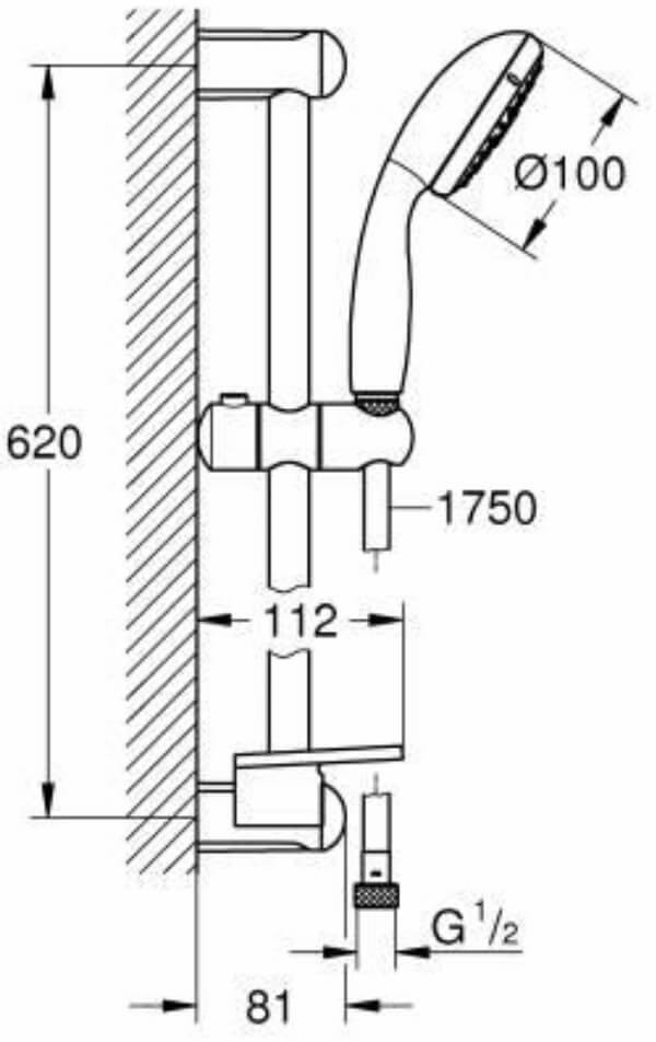 27927001 Tempesta New 100 Душевой гарнитур III, душевая штанга 600 мм, шланг 1750 мм, полочка, хром