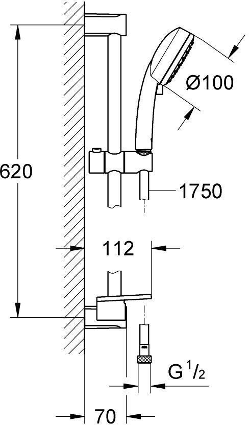 27928002 Tempesta New Cosmopolitan 100 Душевой гарнитур II, душевая штанга 600 мм, шланг 1750 мм, полочка, хром