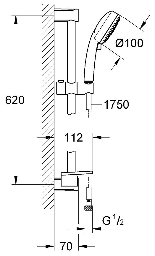 27929002 Tempesta New Cosmopolitan 100 Душевой гарнитур, душевая штанга 600 мм, шланг 1750 мм, полочка, хром