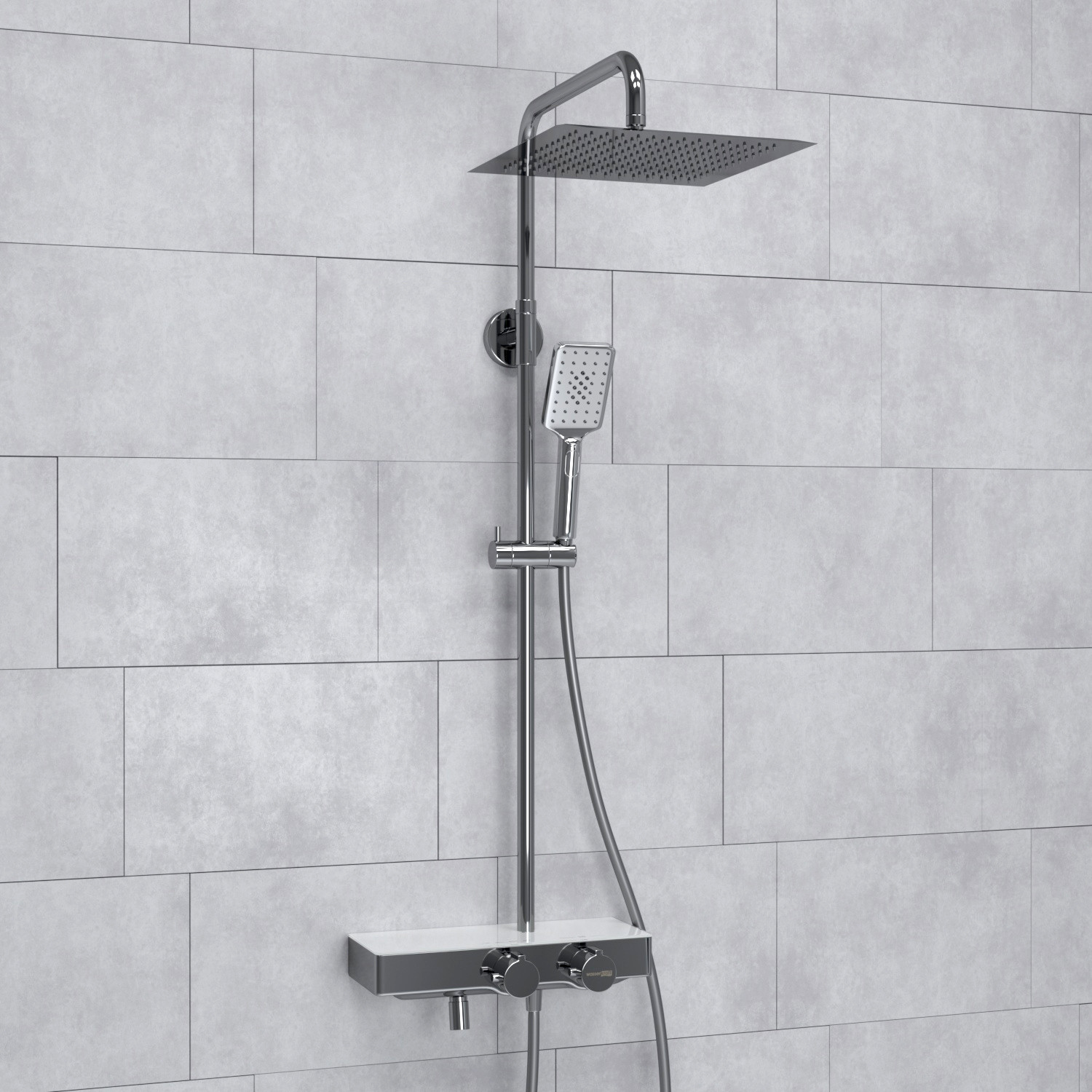 Входит в комплектДушевая насадка 300х300 мм, 144 форсунки, нержавеющая сталь Стойка для душа, Ø 24 мм регулируемая по высоте Лейка 3-функциональная с системой защиты от известковых отложений Шланг ПВХ 1500 мм, подключение к лейке Термостатический смеситель Термостатический картридж Vernet (Франция) Встроенный пластиковый аэратор Neoperl HONEYCOMB (Германия) с регулируемым углом наклона струи Обратный клапан Neoperl (Германия) Керамический поворотный переключатель Набор для монтажа