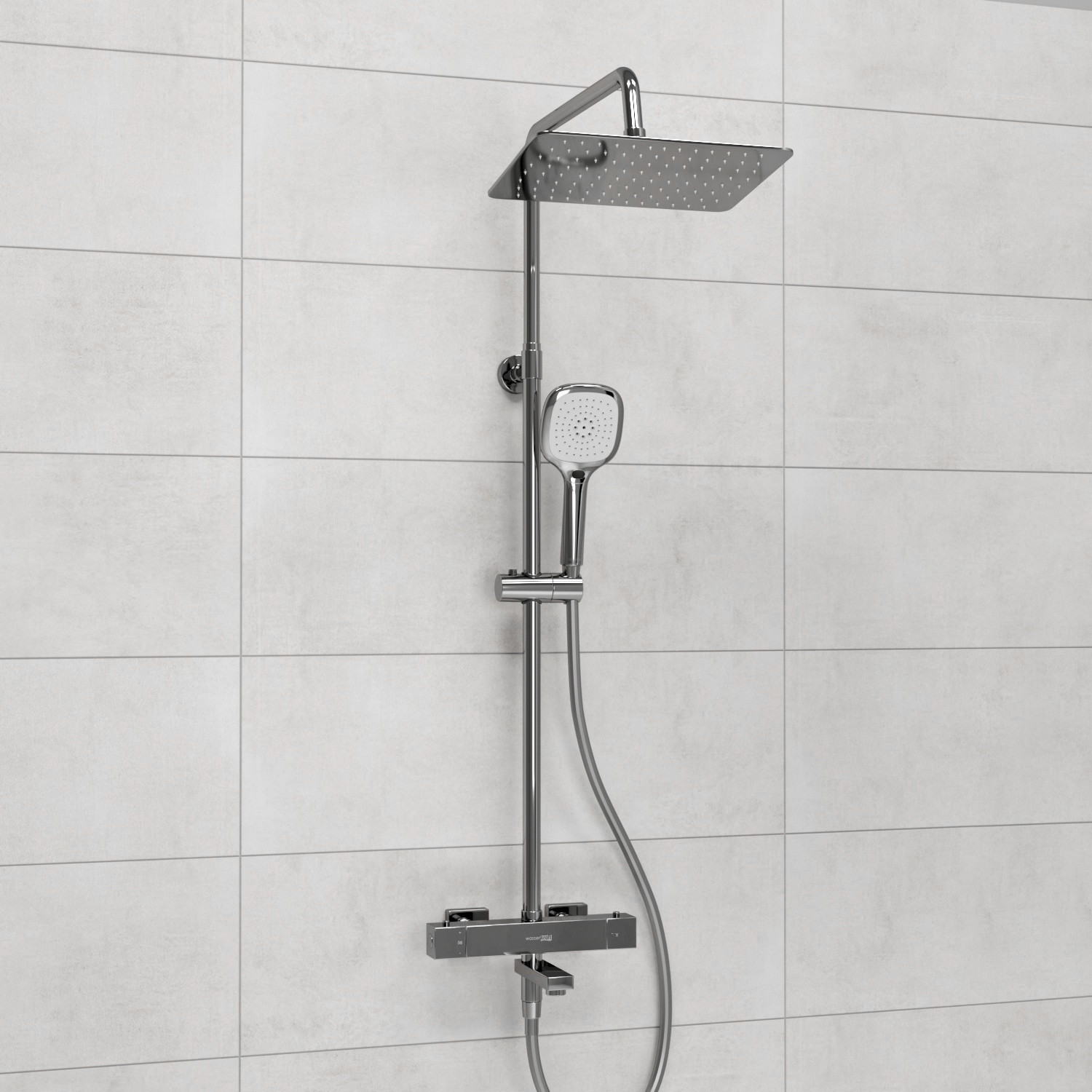 Входит в комплектДушевая насадка 300х200 мм, 112 форсунок, нержавеющая сталь Стойка для душа, Ø 22 мм регулируемая по высоте Лейка 3-функциональная с системой защиты от известковых отложений Шланг ПВХ 1500 мм, подключение к лейке Термостатический смеситель Термостатический картридж Vernet (Франция) Встроенный пластиковый аэратор Neoperl HONEYCOMB (Германия) с регулируемым углом наклона струи Обратный клапан Neoperl (Германия) Керамический поворотный переключатель Набор для монтажа