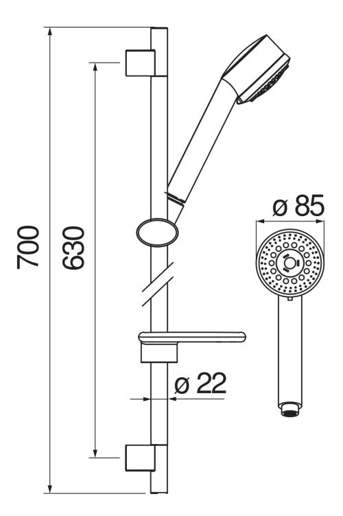 AD140/40CR душевой гарнитур 65 см 3jet