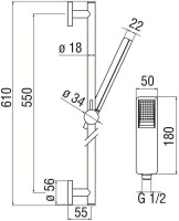 AD140/53BM душевой гарнитур 60 см 1jet (чёрный)