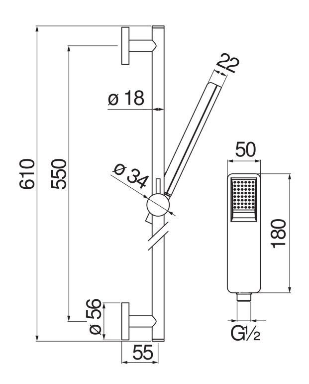 AD140/53CR душевой гарнитур 60 см 1jet