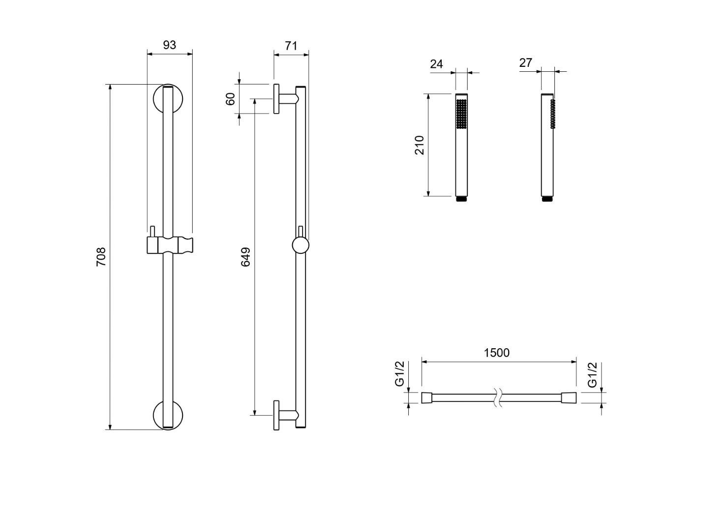 AQ2012BG ЕВРОПА душевой гарнитур 1jet 65 см, шлиф. золото