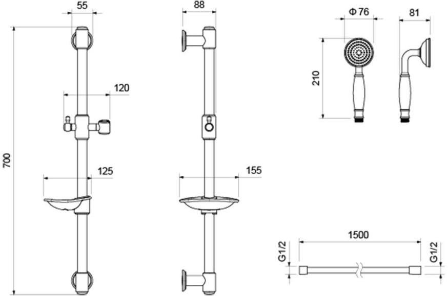 AQ2020PG КЛАССИК душевой гарнитур 1jet 65 см, полир. золото