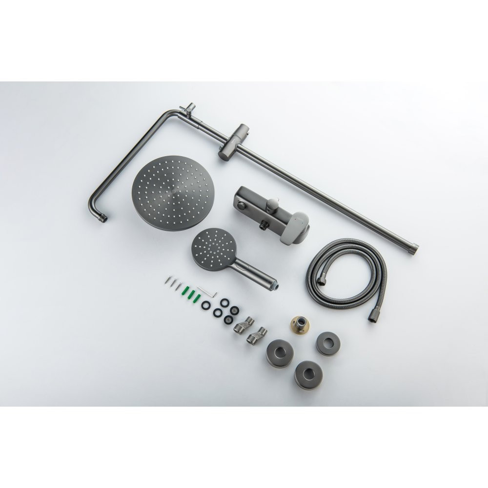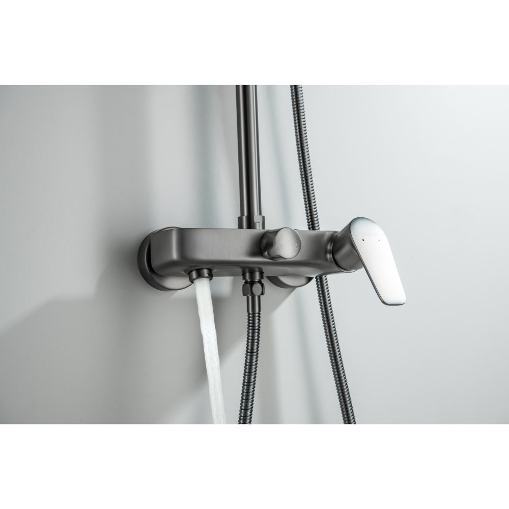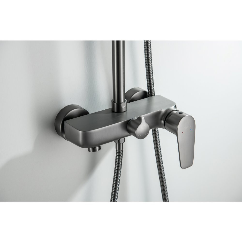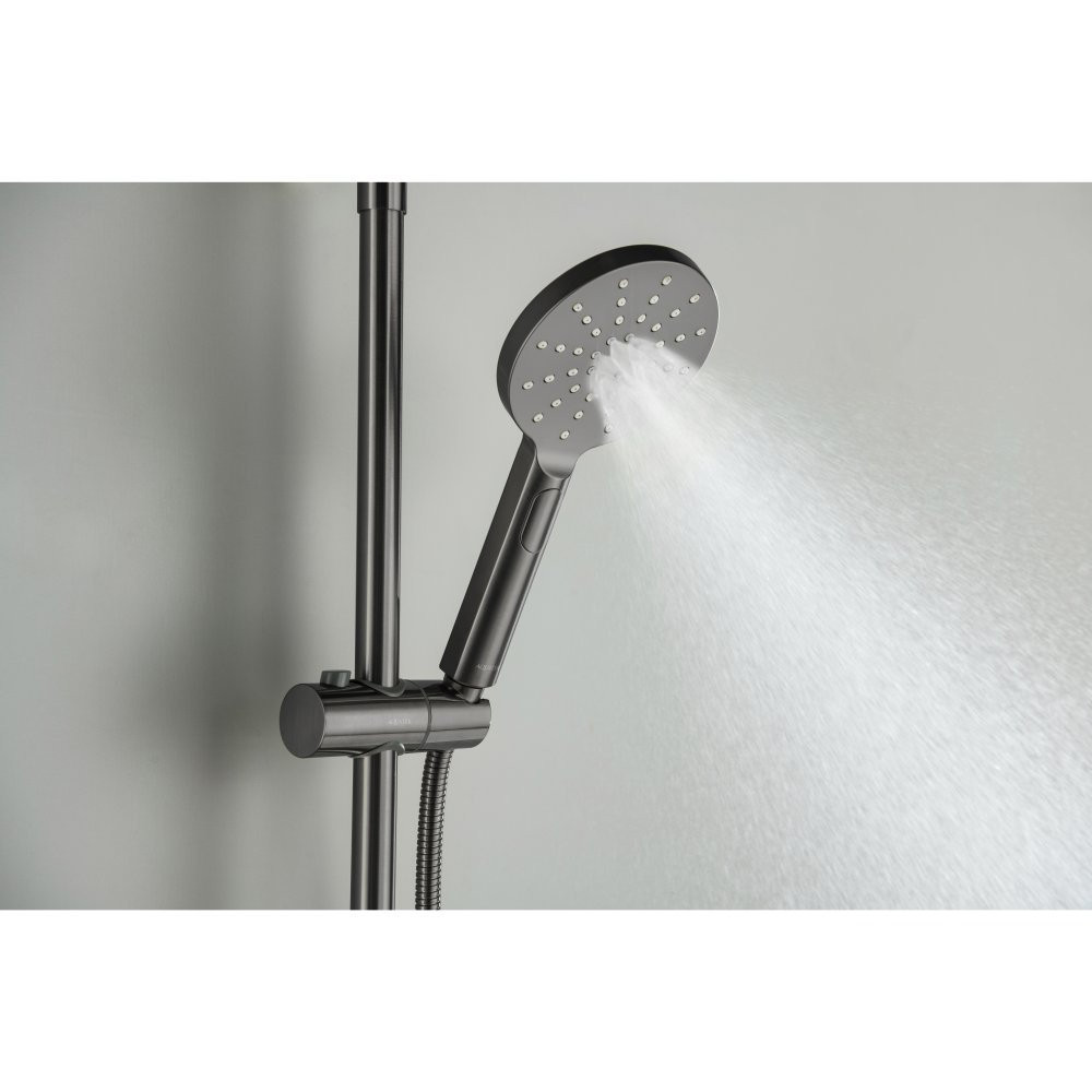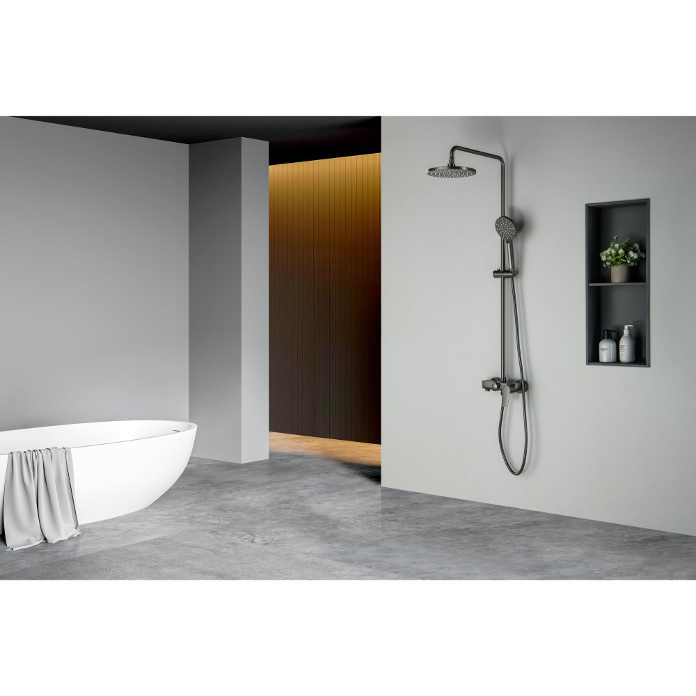 AQ2140BGM БЕТТА душевая система (смеситель для ванны) 220мм, оружейная сталь (шлиф. черный хром)