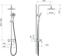 AQ2140CR БЕТТА душевая система (смеситель для ванны) 220мм