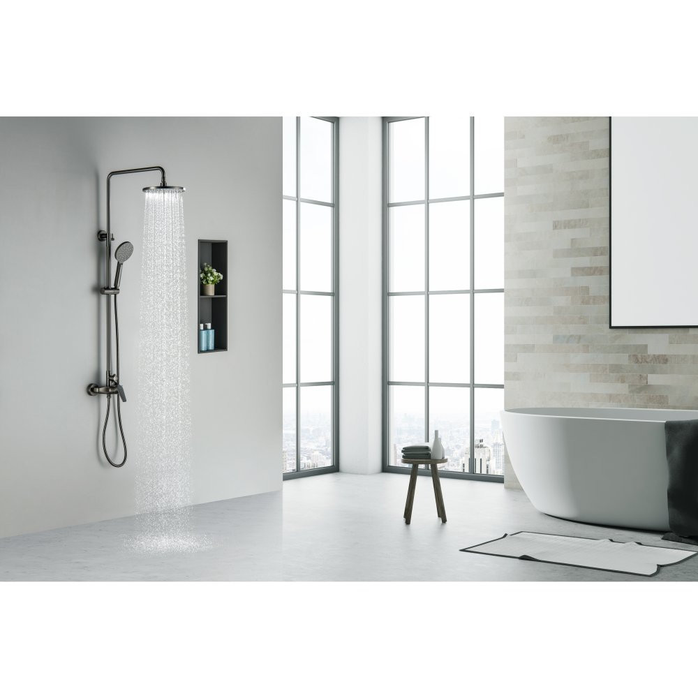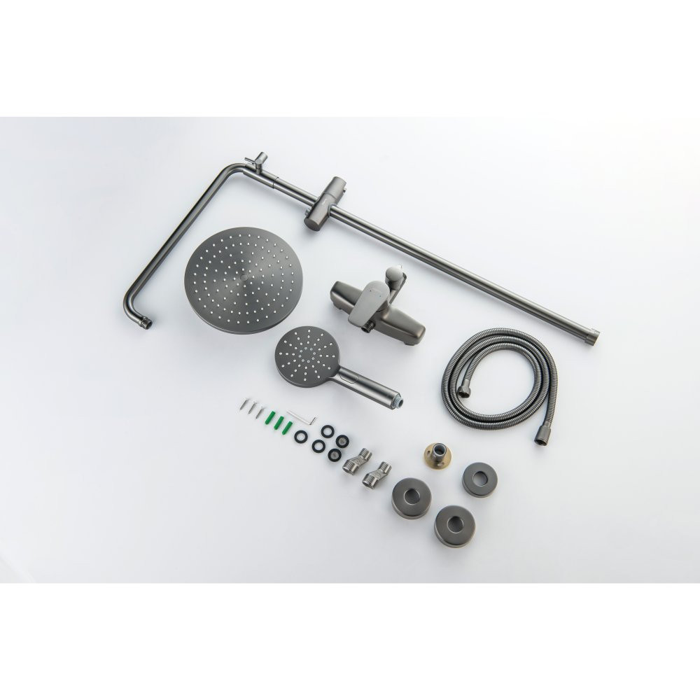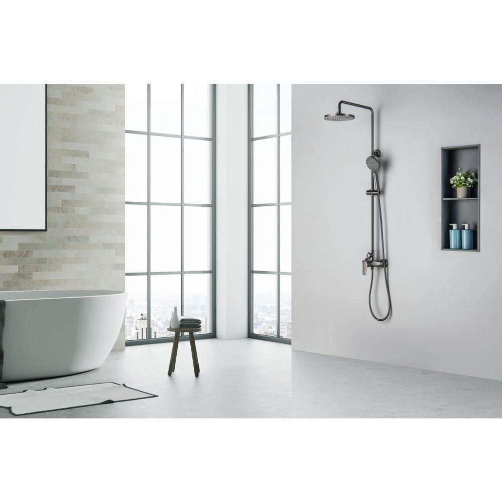 AQ2160BGM БЕТТА душевая система (смеситель для душа) 220мм, оружейная сталь (шлиф. черный хром)