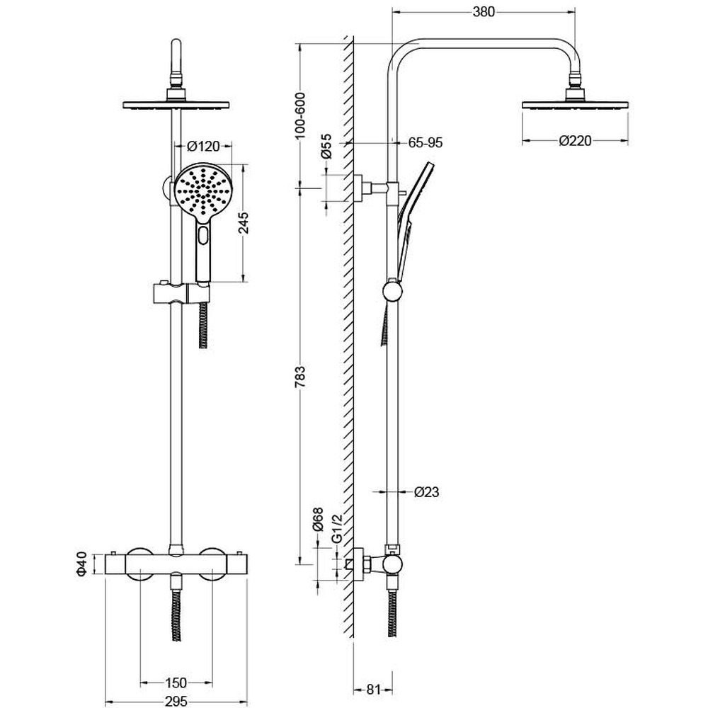 AQ2343BG ЕВРОПА термостатическая душевая система (смеситель для душа) 220мм, шлиф. золото