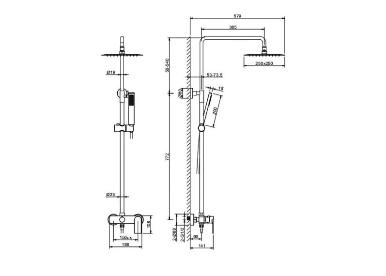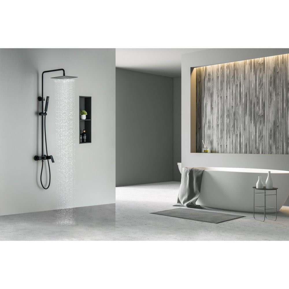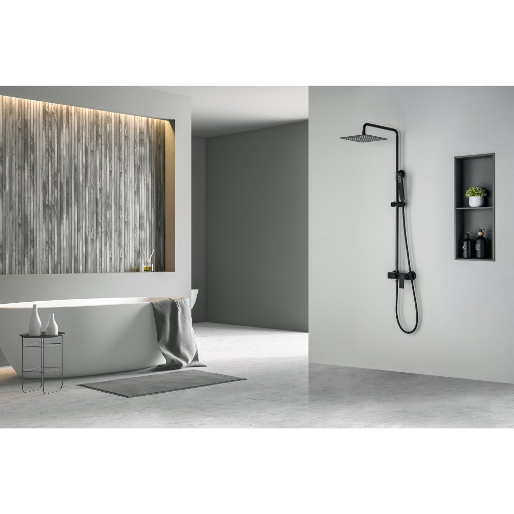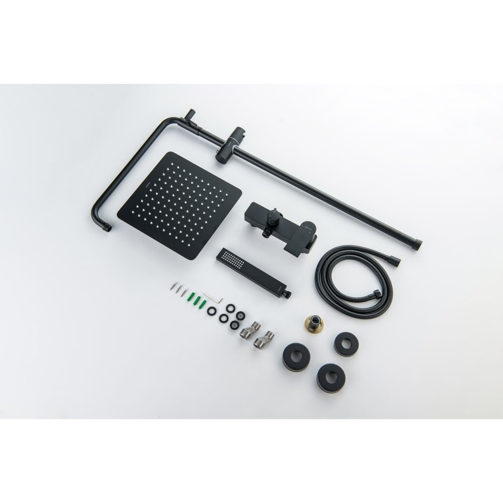 AQ2465MB ЛИРА душевая система (смеситель для душа) 250х250мм, матовый черный