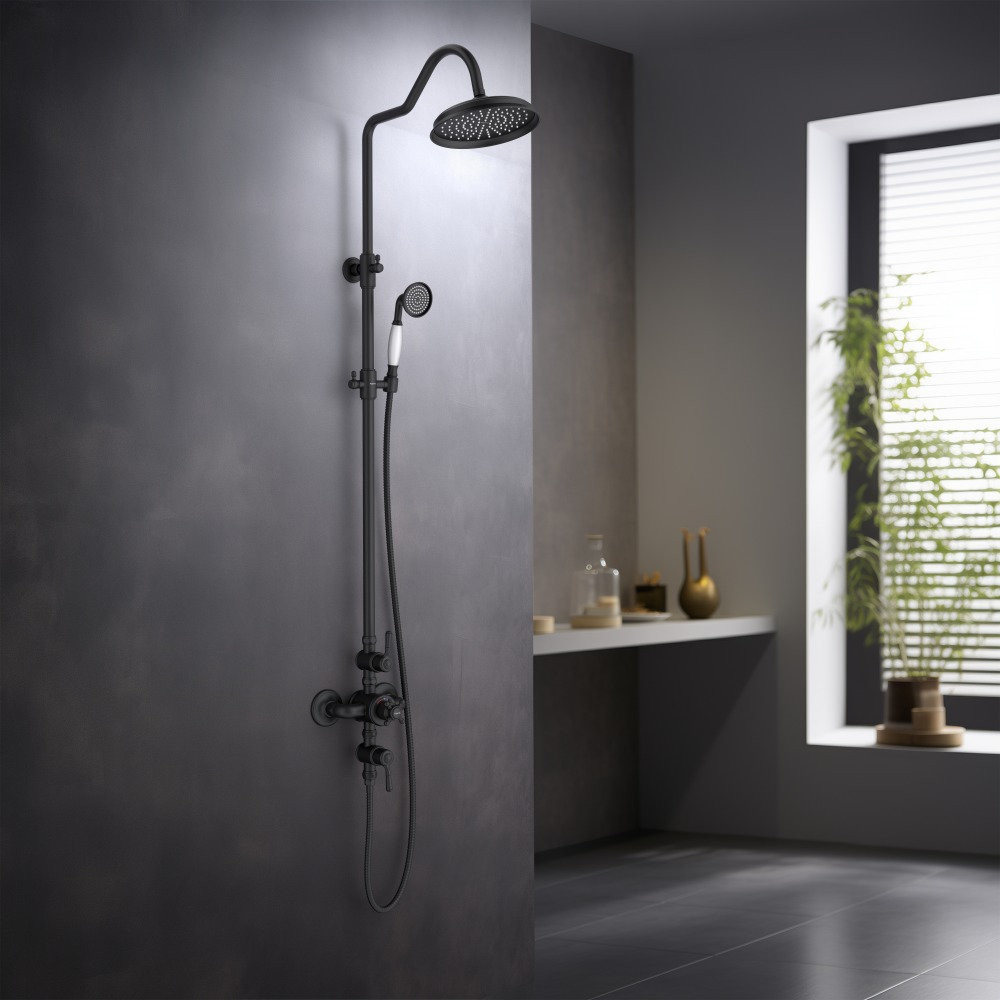 AQ2563MB КЛАССИК термостатическая душевая система (смеситель для душа) 220мм, матовый черный