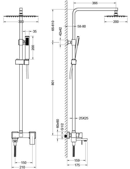 AQ2640CR ЛИБРА душевая система (смеситель для ванны) 300х200мм