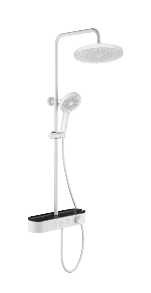 AQM8009W Душевая система со смесит. (верхн. душ 260мм, ручн. душ 3 режима, каскад. излив), цвет белы