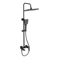Излив душевой системы оснащён аэратором и в сложенном состоянии служит переключателем потока воды, что добавляет удобства в использовании. Верхний душ размером 305х205 мм изготовлен из ABS-пластика и оснащён силиконовыми форсунками, которые легко очищаются от известкового налёта. Благодаря шарниру верхний душ можно регулировать по наклону вдоль всей оси, а его высота настраивается с помощью телескопической конструкции штанги.
