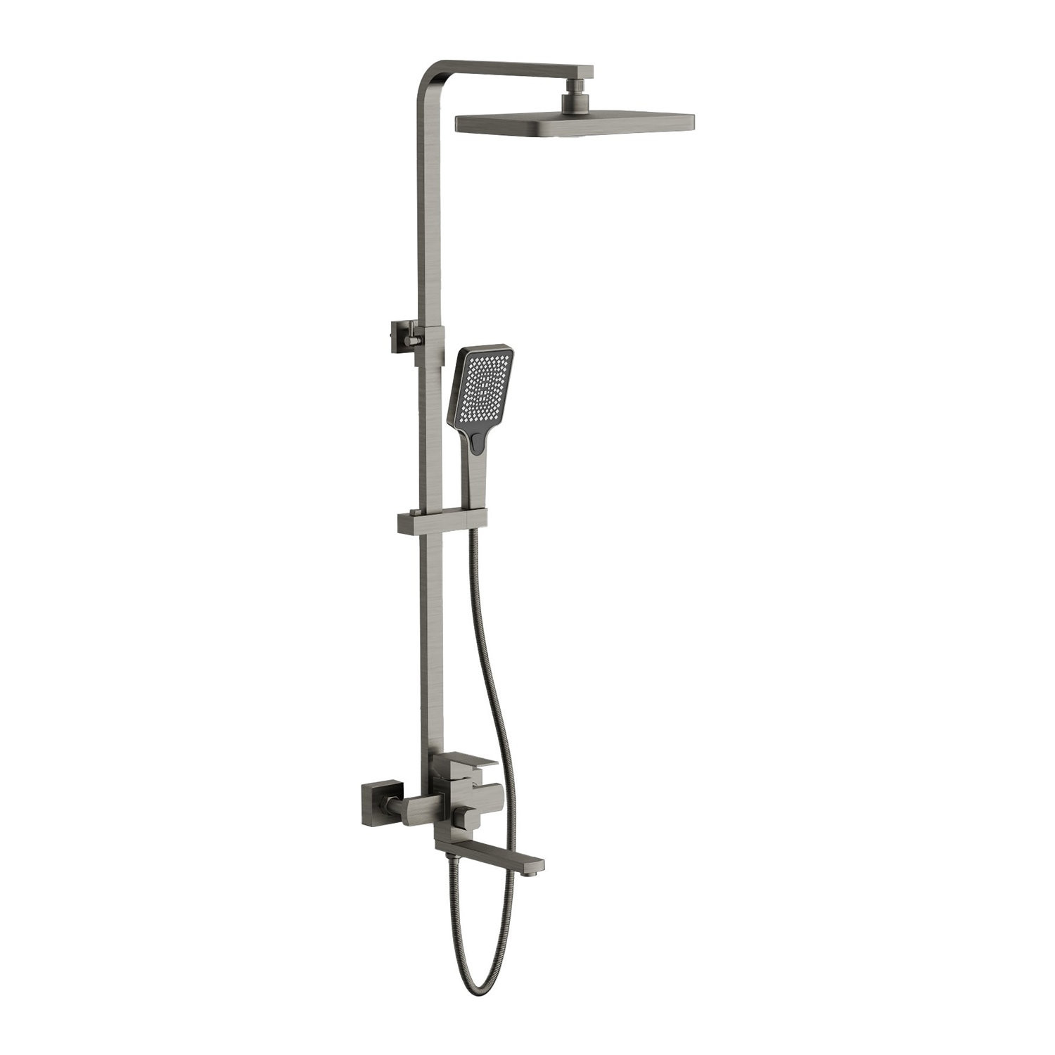 Душевая лейка (ручной душ) также изготовлена из ABS-пластика и оснащена силиконовыми форсунками. Она регулируется как по высоте, так и по наклону благодаря подвижному держателю на штанге. Душевая система комплектуется шлангом в двойной металлической оплётке длиной 150 см, что обеспечивает его прочность и долговечность.