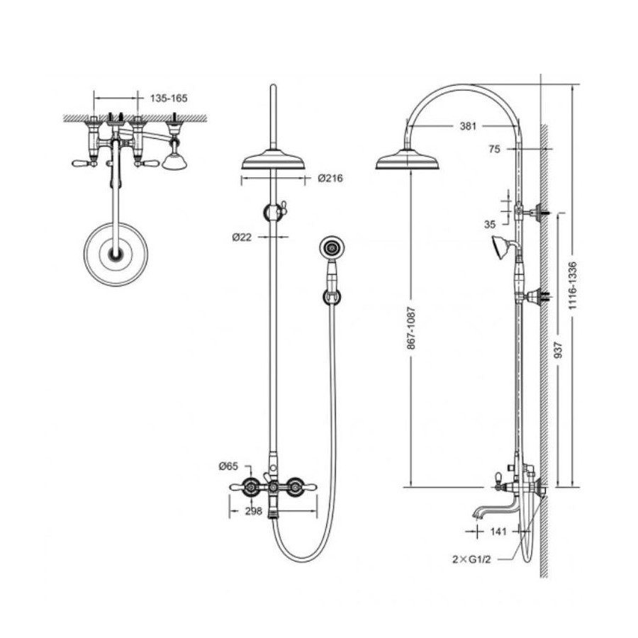 Комплектация: смеситель, верхний душ, штанга, лейка, шланг, эксцентрики, декоративные чашки;