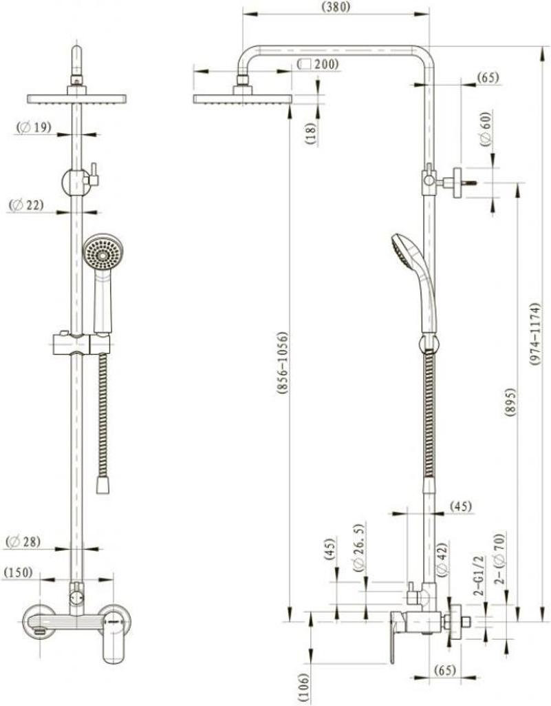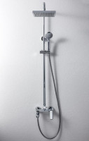 Комплектация: смеситель, верхний душ, штанга, лейка, шланг, эксцентрики, декоративные чашки;
