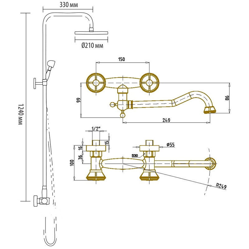 Душевая система Bronze de Luxe ROYAL 10121DR, бронза