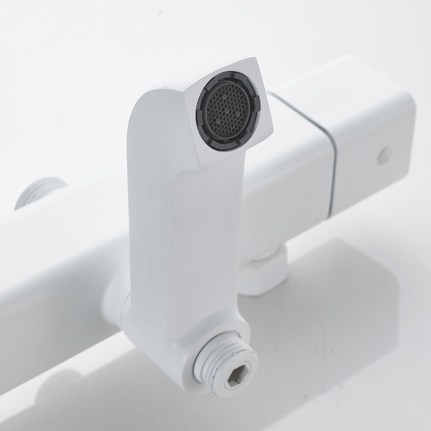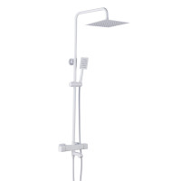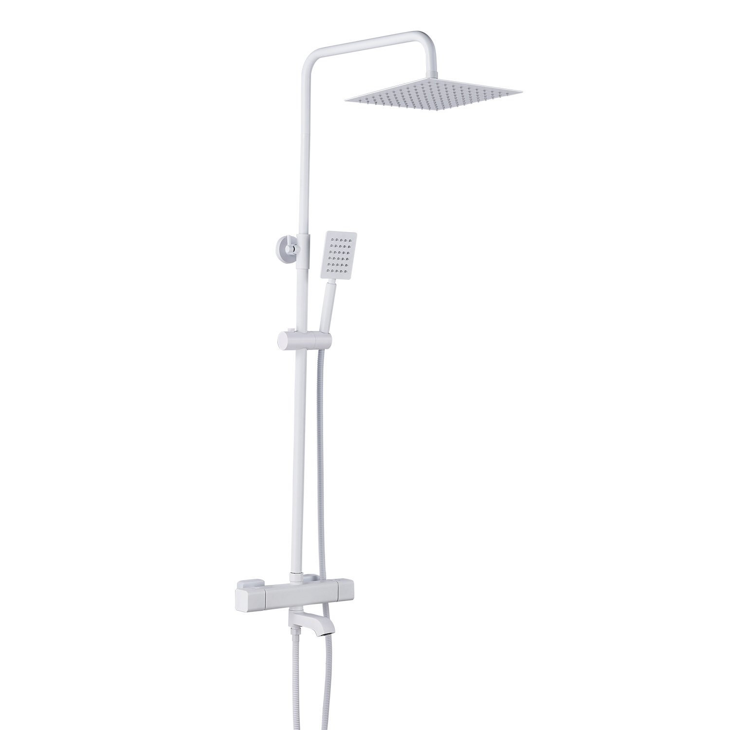Душевая система Shevanik S3096C в белом матовом стиле — это стильное и функциональное решение для вашей ванной комнаты. Изготовленная из высококачественной латуни, она станет надёжным элементом интерьера на долгие годы. Термостатический картридж обеспечивает безопасность и комфорт при использовании, а излив для наполнения ванны легко складывается, когда не нужен.