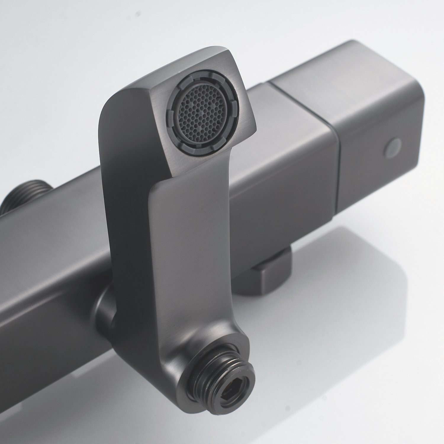 Душевая система Shevanik S3096T в цвете "оружейная сталь" — это стильное и функциональное решение для вашей ванной комнаты. Изготовленная из высококачественной латуни, она станет надёжным элементом интерьера на долгие годы. Термостатический картридж обеспечивает безопасность и комфорт при использовании, а излив для наполнения ванны легко складывается, когда не нужен.