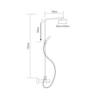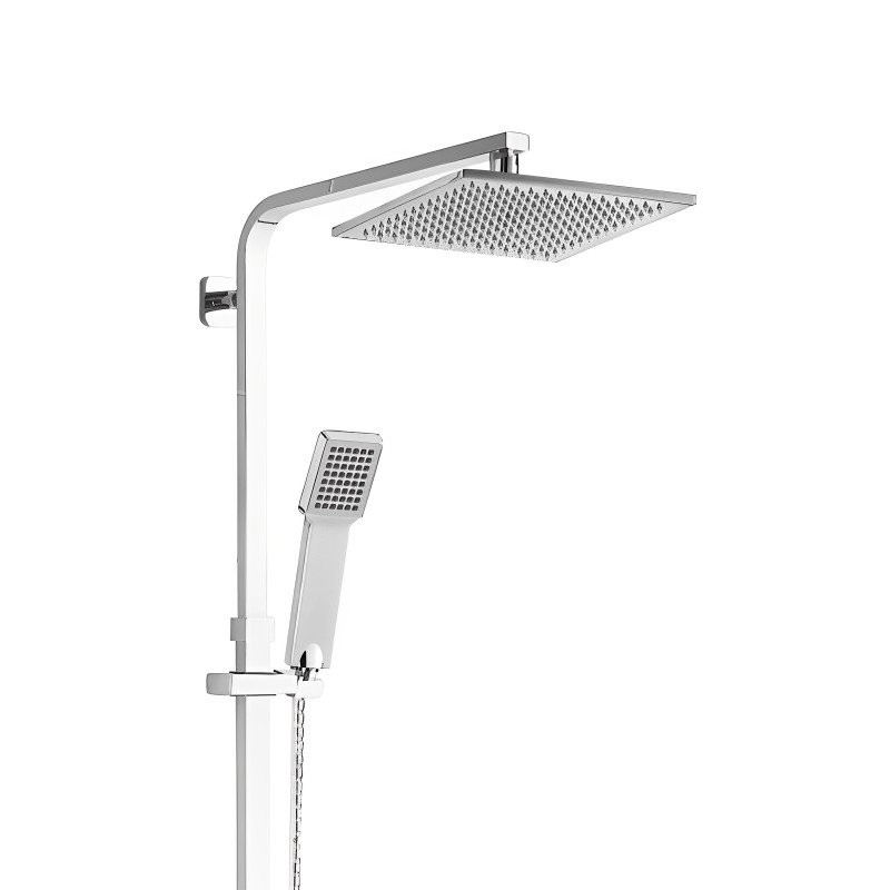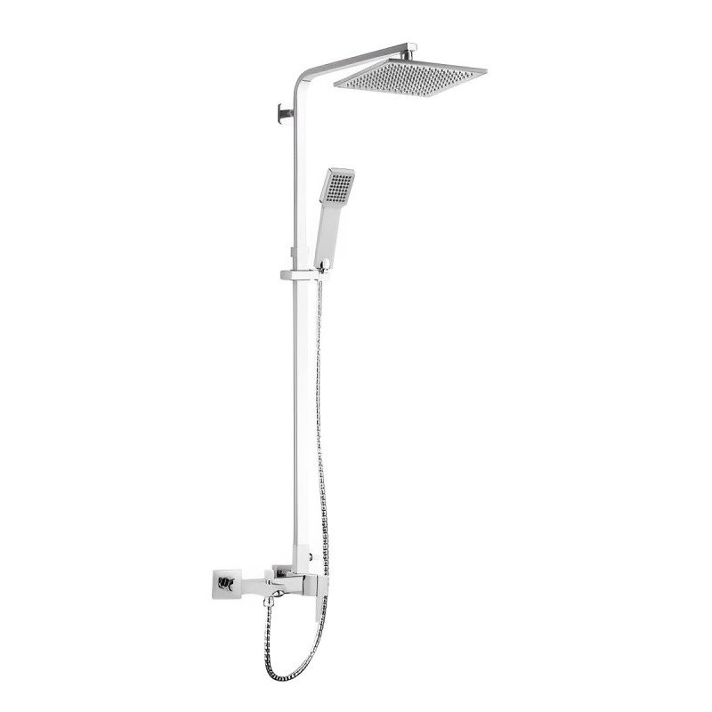 Душевая система D-Lin D10A02, хром. Управление: рычажное. Ручной душ: да. Размер верхнего душа: 20x20 см. Излив для наполнения ванны: да.