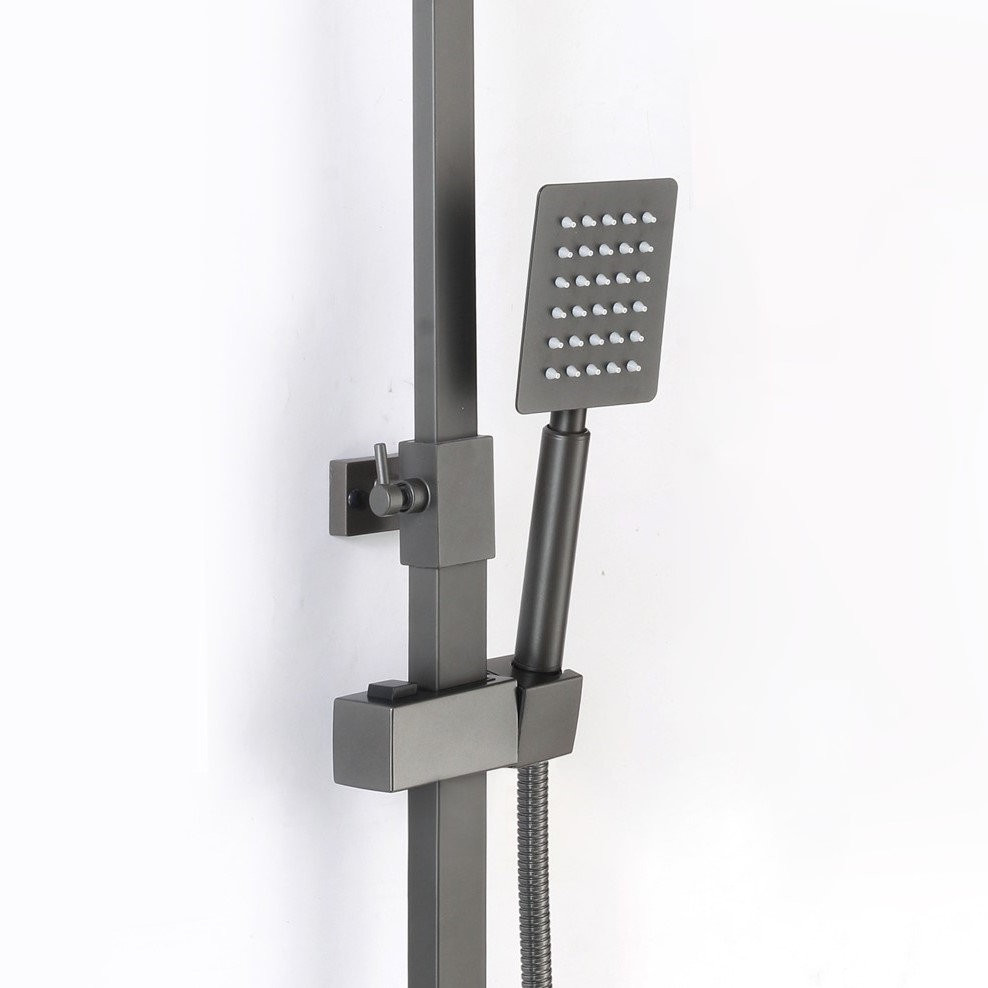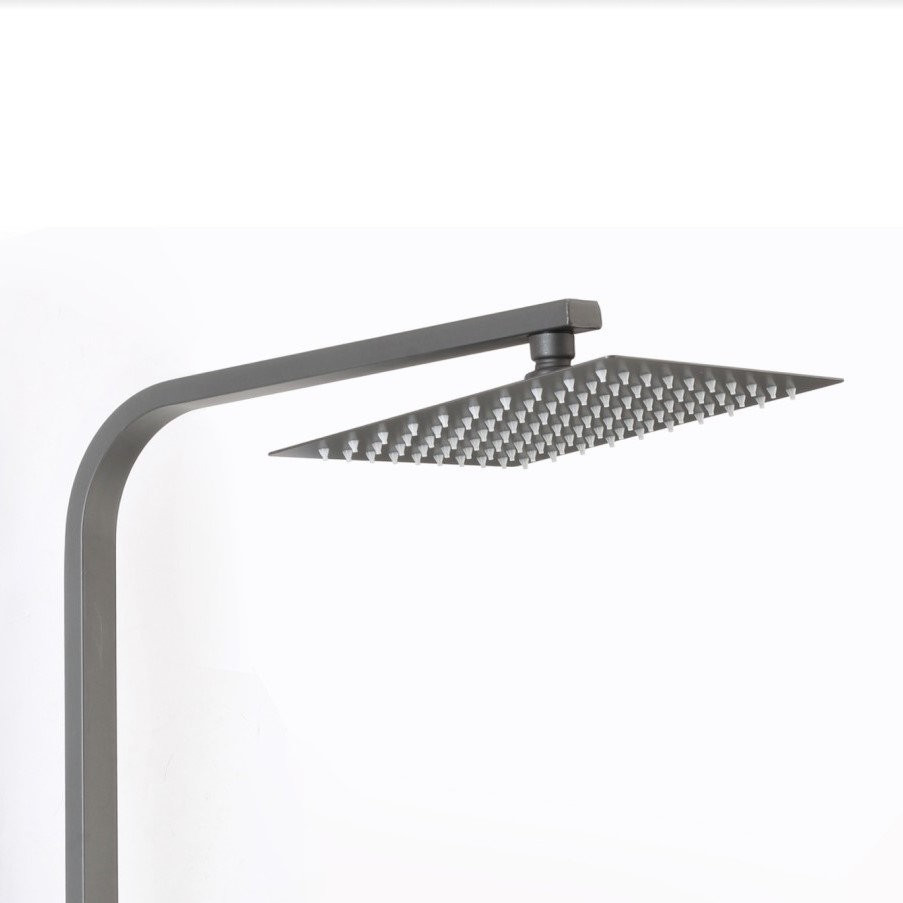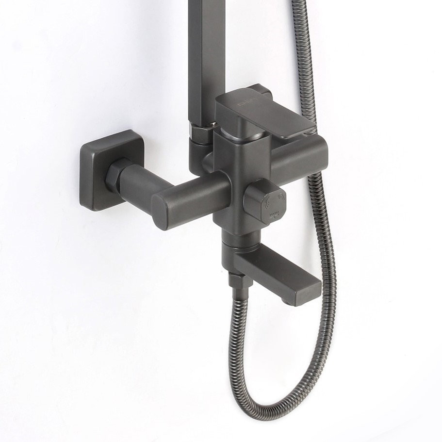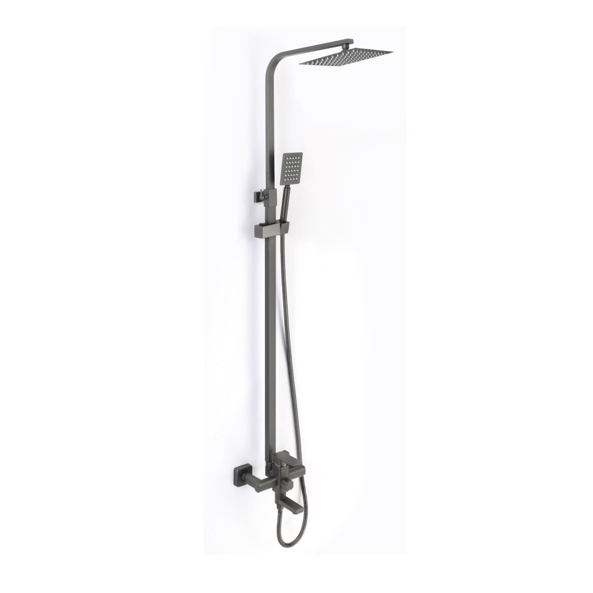 Душевая система D-Lin D10A03-S, оружейная сталь. Управление: рычажное. Ручной душ: да. Размер верхнего душа: 20x20 см. Излив для наполнения ванны: да.