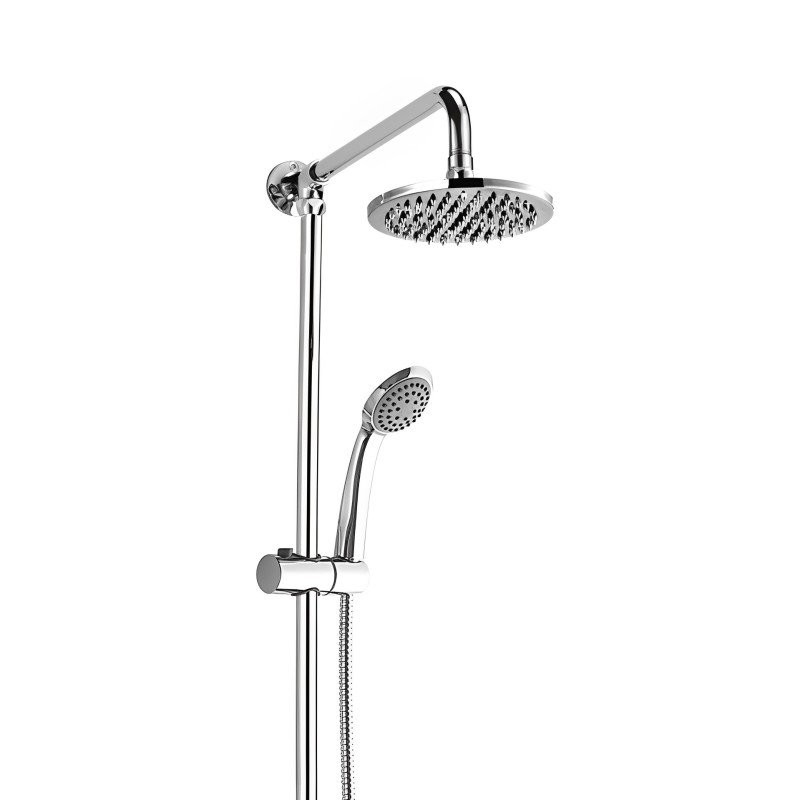 Душевая система D-Lin D10A19, хром. Управление: вентильное. Ручной душ: да. Размер верхнего душа: 15x15 см. Излив для наполнения ванны: нет.
