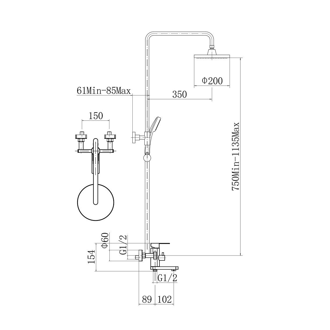 Размер верхнего душа, см: 20x20;