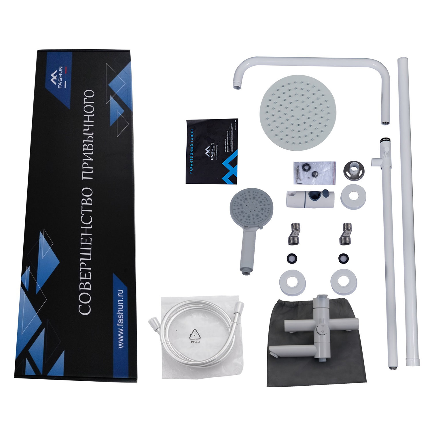 Комплектация: смеситель, верхний душ, штанга, лейка, шланг, эксцентрики, декоративные чашки;