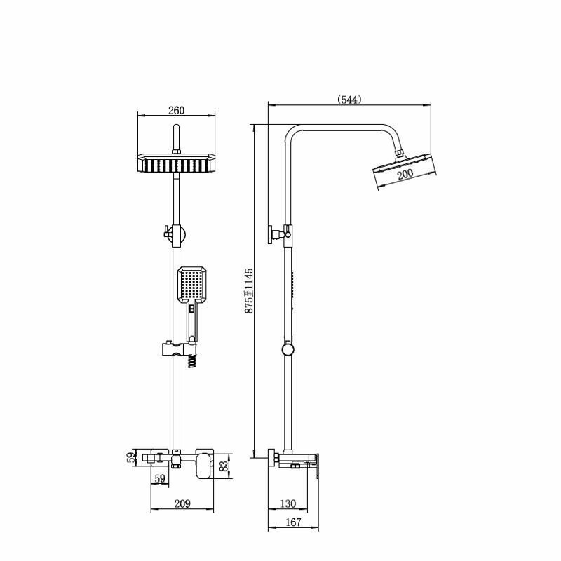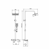 верхняя лейка: чёрная ABS, квадратная 200х200 мм