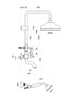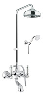 Комплектация: верхний душ, душевая штанга, держатель душевой лейки, ручной душ, смеситель, шланг;