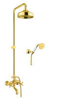 Комплектация: верхний душ, душевая штанга, держатель душевой лейки, ручной душ, смеситель, шланг;
