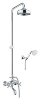 Комплектация: верхний душ, душевая штанга, держатель душевой лейки, ручной душ, смеситель, шланг;