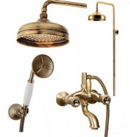 Комплектация: верхний душ, душевая штанга, держатель душевой лейки, ручной душ, смеситель, шланг;