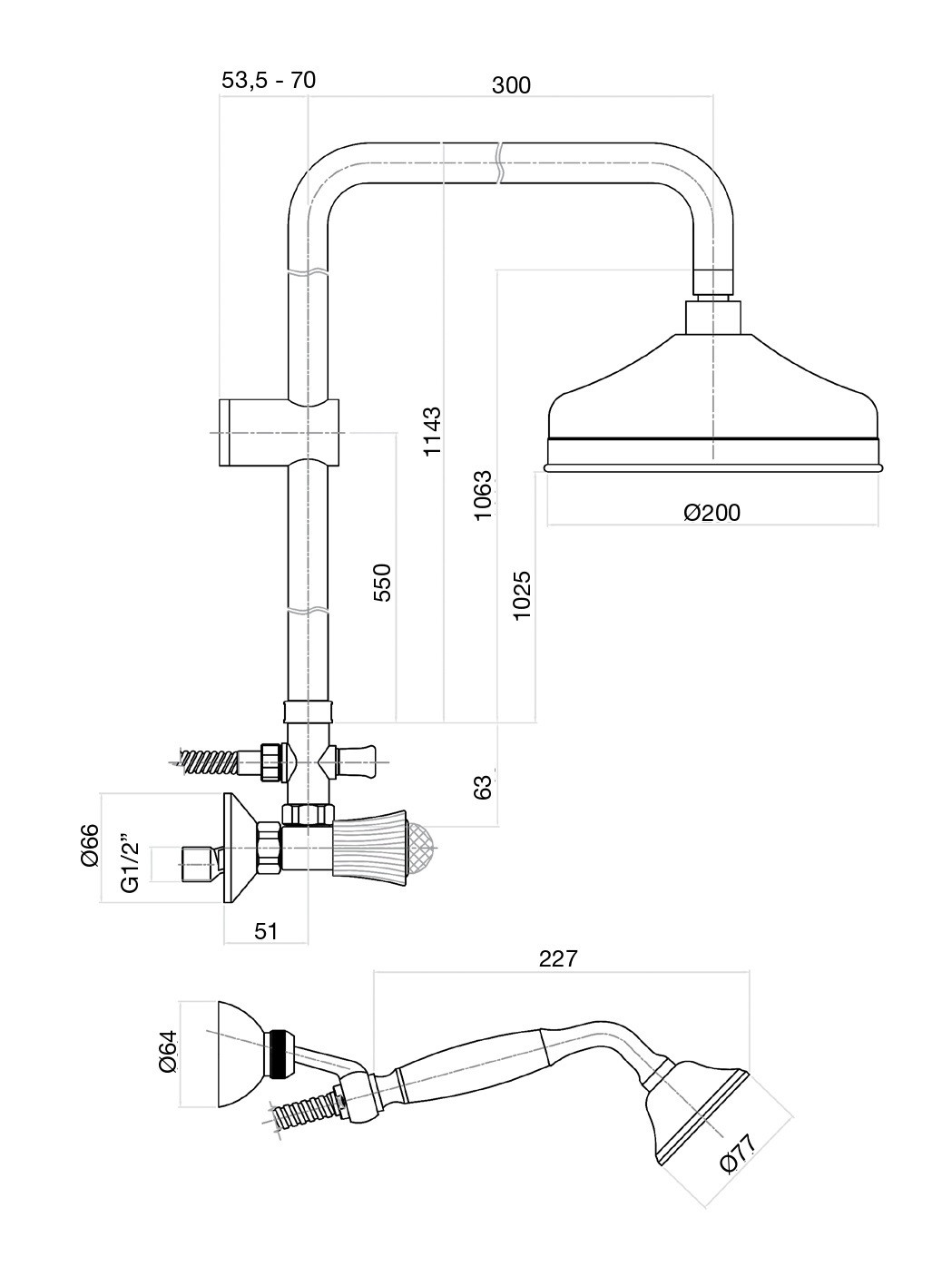 Форма верхнего душа: круглая;