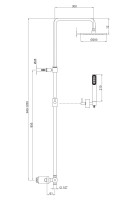 Комплектация: верхний душ, душевая штанга, держатель душевой лейки, ручной душ, смеситель, шланг;