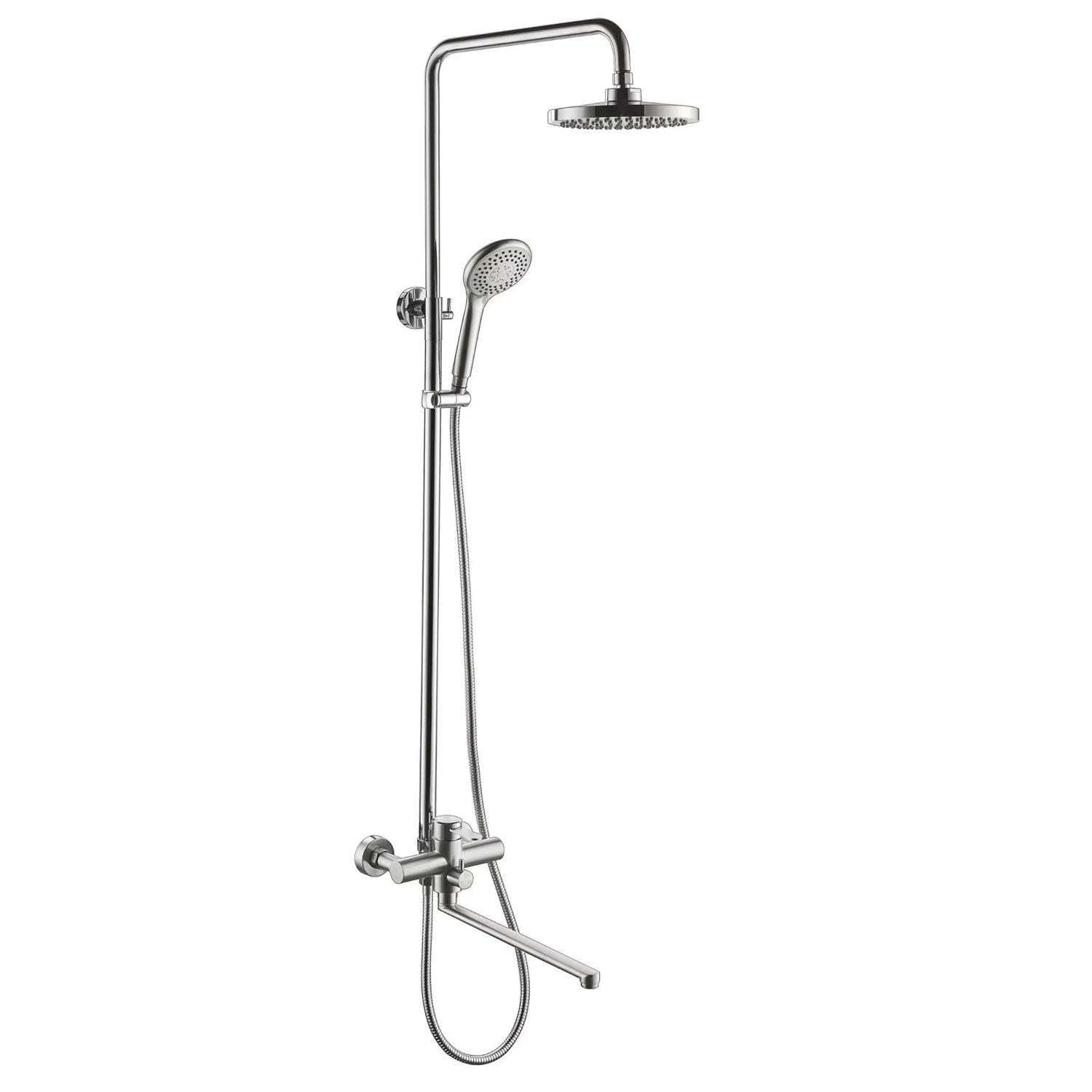 Комплектация: верхний душ, душевая штанга с держателем лейки, ручной душ, смеситель, шланг;