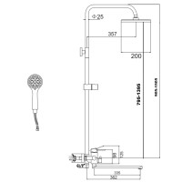 Душевая стойка Fmark FS8345-35. Тип переключателя: керамический картридж. Форма верхнего душ: круглая. Диаметр верхнего душа: 200х200 мм. Форма ручного душа: круглая. Регулируемый держатель ручного душа: да. Регулируемая высота стойки: да. Длина шланга: 1500 мм.