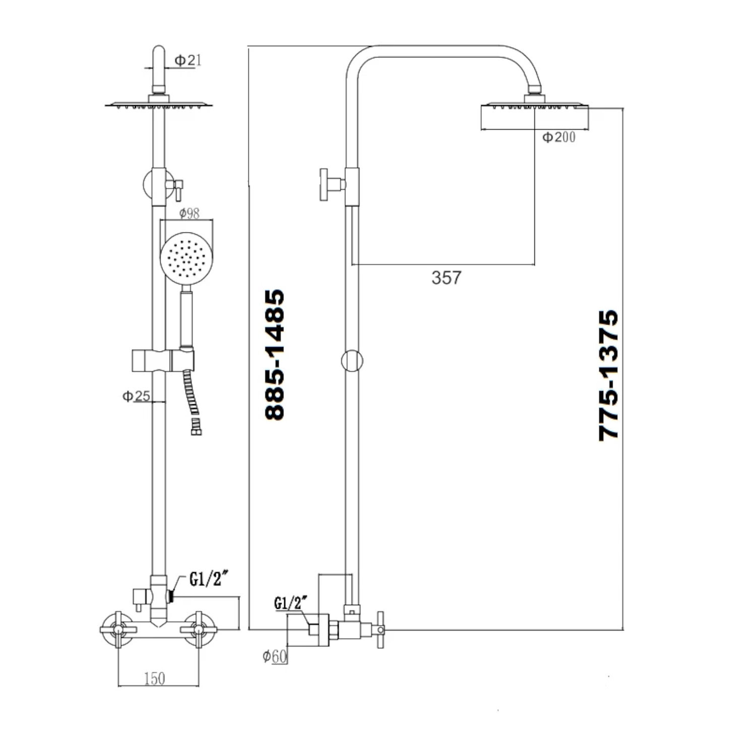 Душевая стойка Fmark 3004 FS8435. Тип переключателя: керамическая кран-букса. Излив отсутствует. Форма верхнего душ: круглая. Диаметр верхнего душа: 200 мм. Поверхность матовая. Длина шланга: 1500 мм.