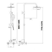Комплектация: верхний душ, душевая штанга с держателем лейки, ручной душ, смеситель, шланг;