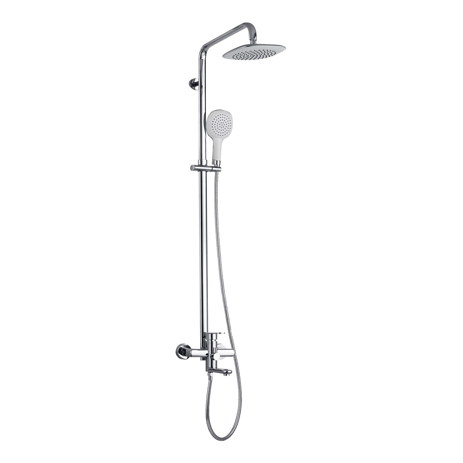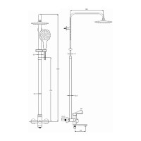 Комплектация: смеситель, душевая штанга, верхний душ, душевая лейка, шланг, декоративные отражатели, эксцентрики;