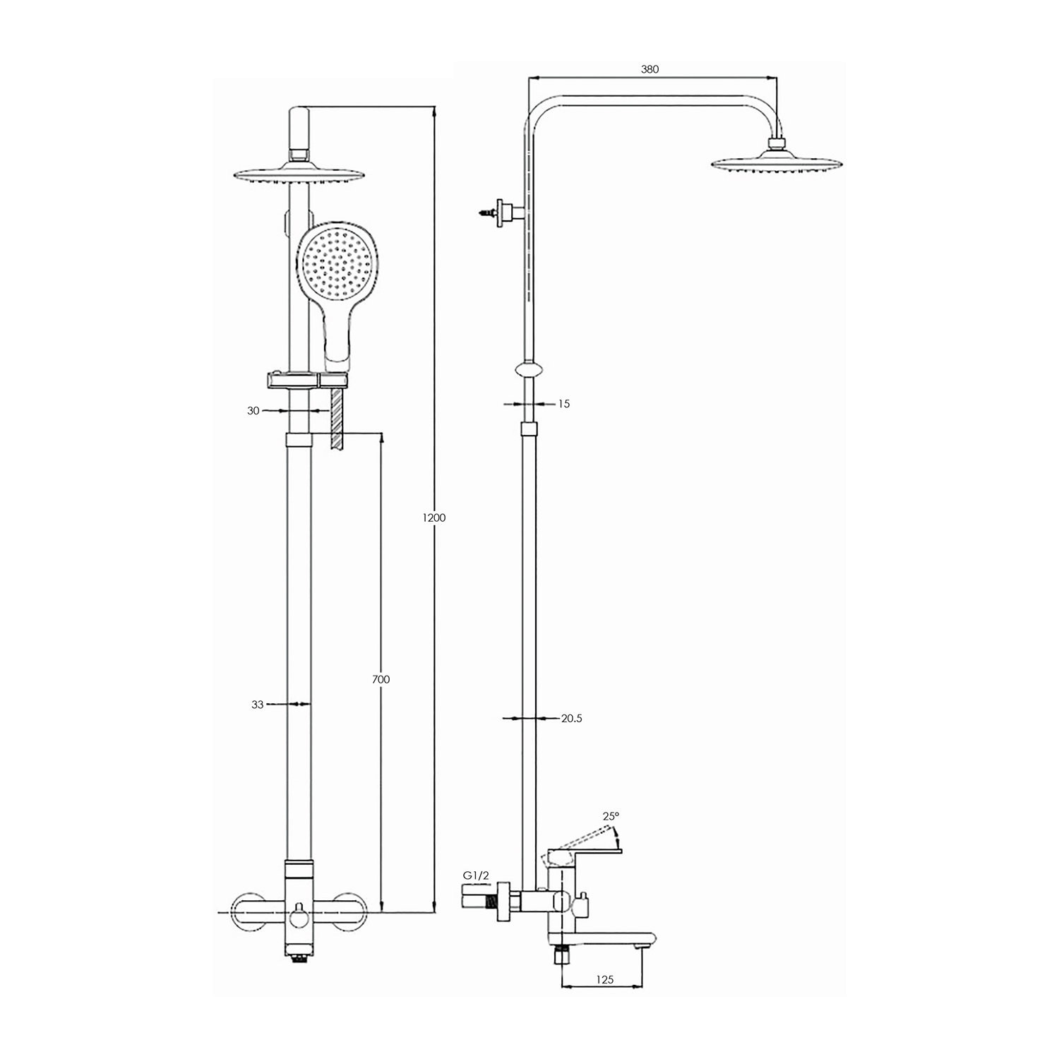Размер верхнего душа, см: 20х20;